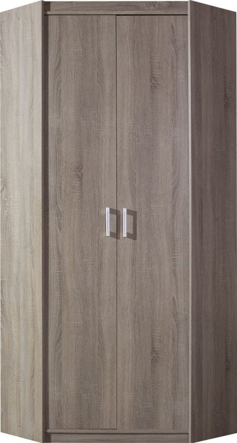 - w szafie narożnej ME8 z prawej cztery półki, na wprost drążek na wieszaki