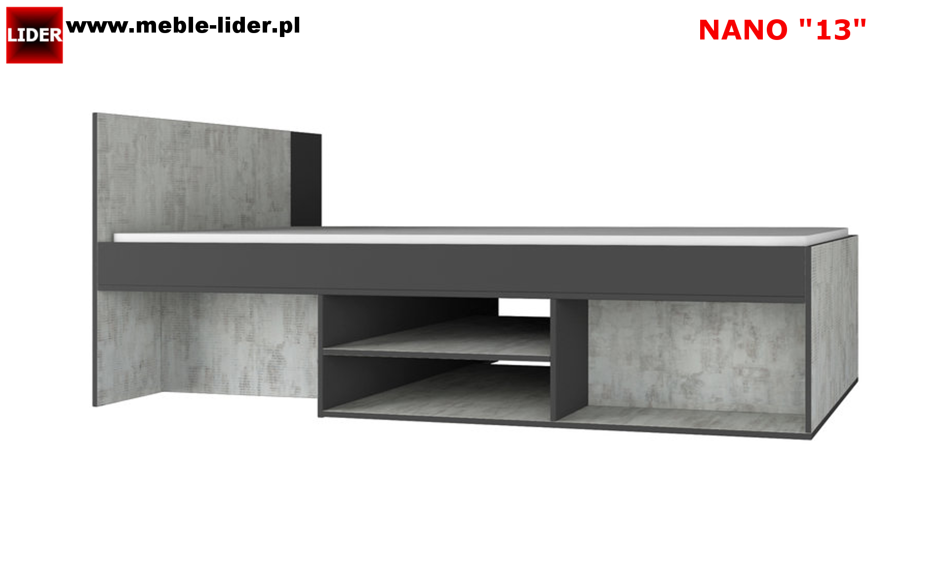 NA13 : 203 szer. x 80 wys. x 114 gł. łóżko młodzieżowe, pow. spania 90 x 200, materac za dopłatą