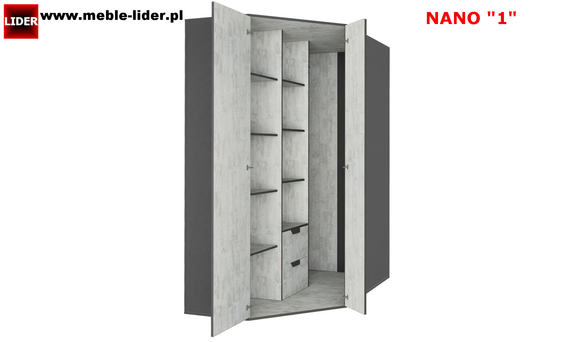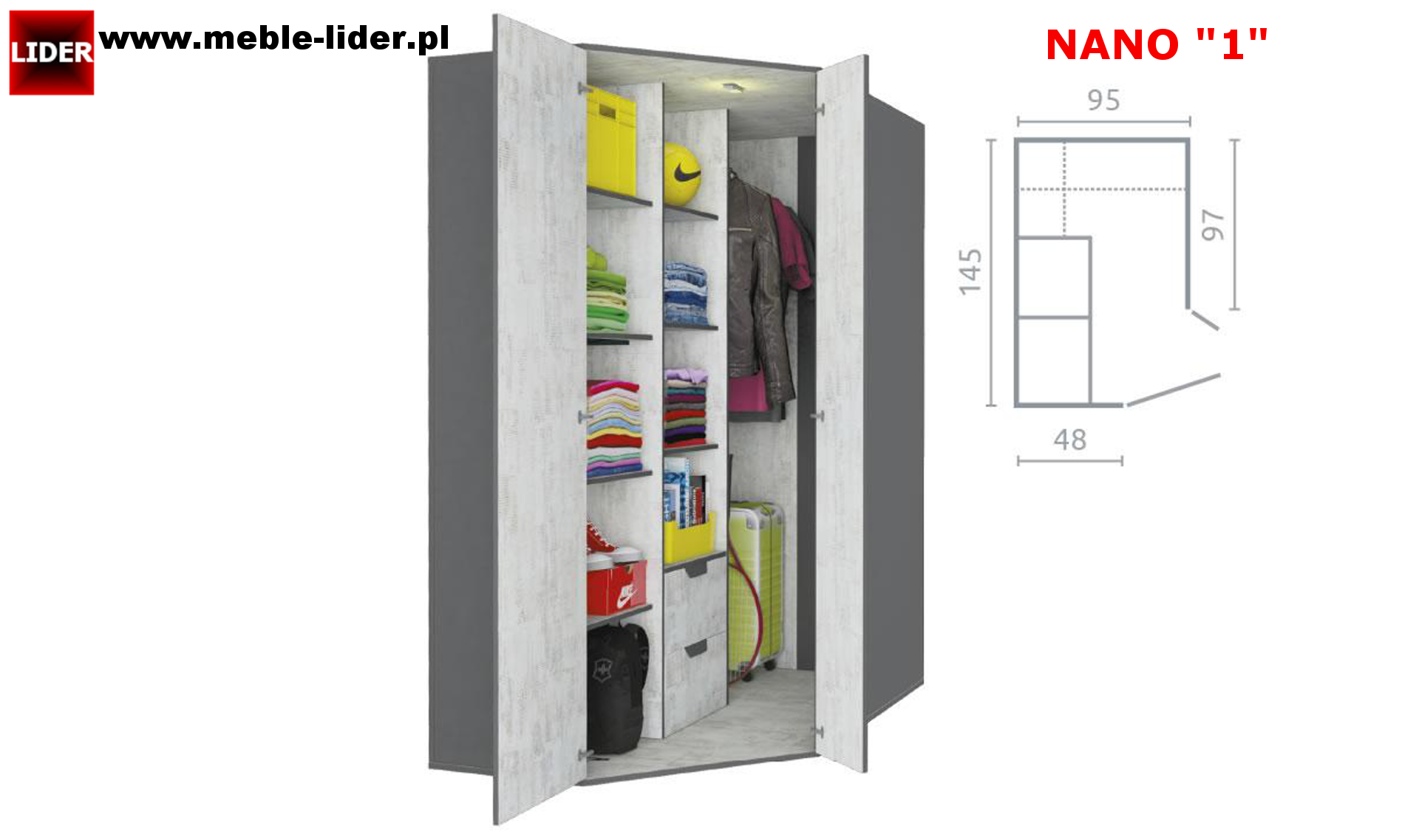 NA1 : 145 szer. x 195 wys. x 95 gł. szafa narożna z oświetleniem za dopłatą