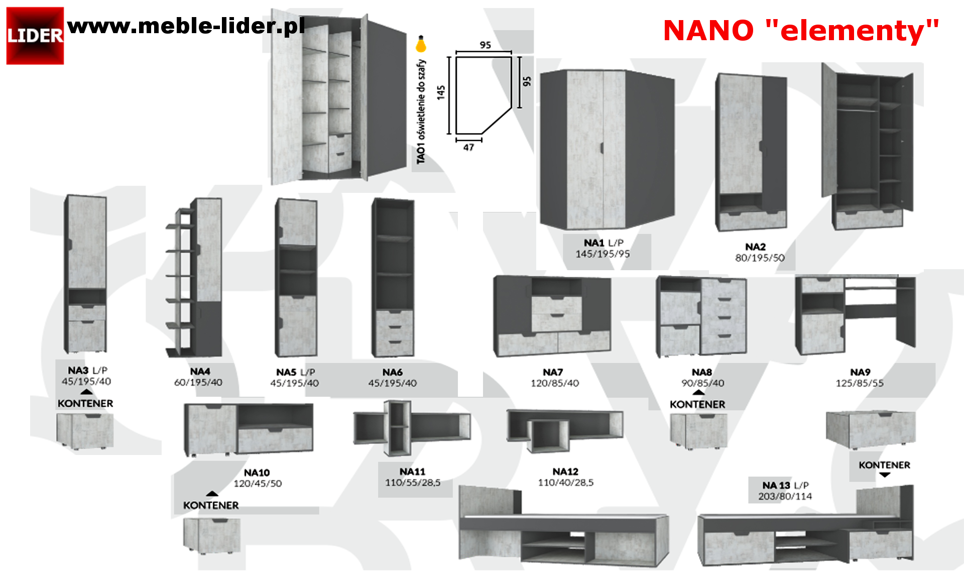 System mebli młodzieżowych NANO propozycja ustawienia D.