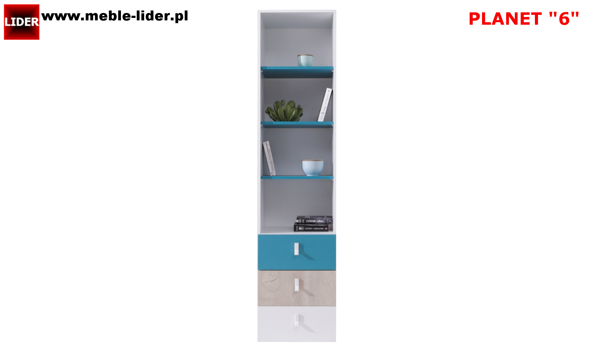 PL6 : 45 szer. x 190 wys. x 40 gł. regał otwarty z szufladami