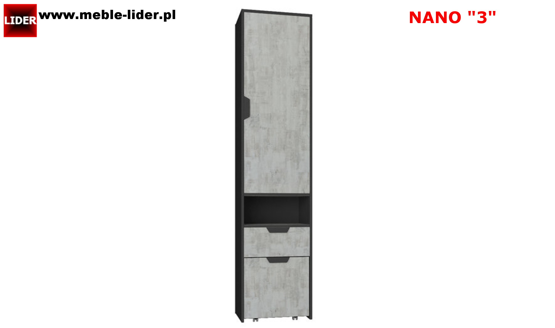 NA3 : 45 szer. x 195 wys. x 40 gł. regał młodzieżowy z wysuwanym kontenerkiem