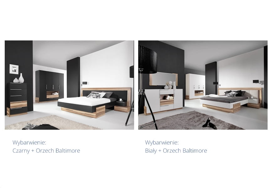 Przedmiotem oferty jest nowoczesna szafa do sypialni Morena. Jest to szafa wysokiej jakości wykonana z wysokogatunkowej płyty laminowanej wzmocnionej obrzeżami ABS. Dostępna jest w dwóch wybarwieniach: biały + orzech baltimore lub czarny + orzech baltimore. Kolekcja Morena jest idealnym rozwiązaniem do nowoczesnej sypialni urządzonej w białej lub czarnej kolorystyce.