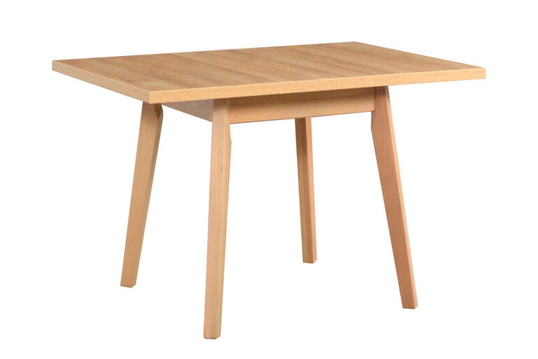 Podstawa stołu wykonana z drewna bukowego, blat z laminatu ABS.